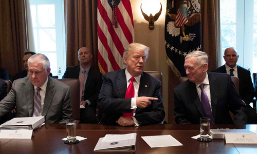 Đầu tháng 12/2017, dù tỷ lệ ủng hộ xuống đến mức thấp kỷ lục 32%, Tổng thống Mỹ Donald Trump vẫn mải mê ngồi sau chiếc bàn Kiên Định trong Phòng Bầu Dục, chủ trì cuộc họp đánh giá những đối thủ có thể đe dọa đến nỗ lực tái tranh cử năm 2020 của mình, theo Politico.
