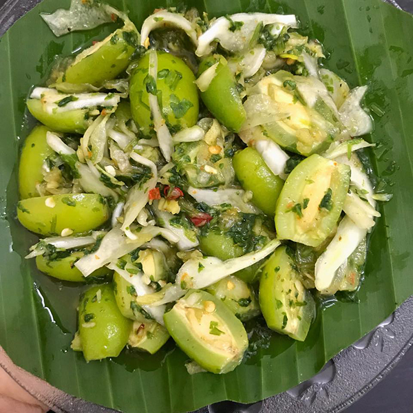 Nhót xanh chấm chẩm chéo là món ăn yêu thích của các tín đồ nghiện chua. Món ăn này có nguồn gốc từ đồng bào Thái ở các tỉnh Tây Bắc đặc biệt là Sơn La, Điện Biên. Ngày nay, món ăn này được nhân rộng ở khắp mọi nơi, rất thích hợp để ăn chống ngán trong những bữa tiệc nhiều mỡ, đạm.