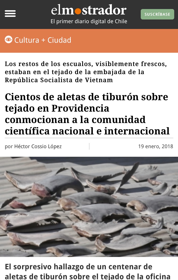 Sự việc xuất phát từ những người xung quanh cảnh báo về mùi hôi trên mái nhà cơ quan ngoại giao. Đây cũng là lần đầu tiên xảy ra tại Chile khi gần cả 100 vây cá mập của các loài trưởng thành còn tươi được phơi ngay trong thành phố.
