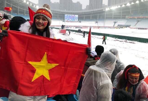 Thời tiết tại trận chung kết giữa U23 Việt Nam và Uzbekistan đang rất khắc nghiệt. Tuyết rơi dầy nhưng khí thế của cả các cầu thủ và cổ động viên đều hừng hực khí thế. Nhiều sao Việt đã có mặt ở Trung Quốc để cổ vũ cho đội tuyển U23 VN.