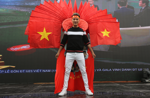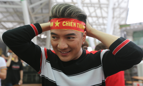 Tại TP HCM, từ 14h ngày 27/1, Đàm Vĩnh Hưng và ca sĩ Vũ Hà đã cùng nhau đến một điểm xem bóng đá chung để thể hiện tình yêu với U23. Cả hai đeo sau vai những lá cờ đỏ sao vàng được xếp thành vòng.