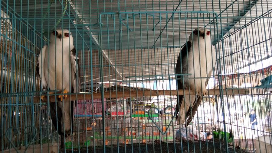 Đại bàng mắt đỏ được rao bán ở đây cho những khách hàng có thú chơi chim cảnh (Ảnh: Quốc Hải)