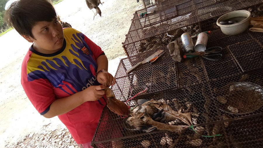 Một cậu bé đang nhổ lông chim để bán cho khách hàng...(Ảnh: Quốc Hải)