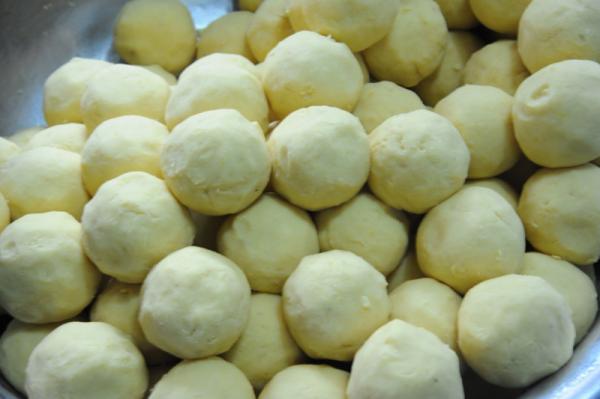 Đỗ xanh ngâm khoảng 3 tiếng rồi đồ chín, nghiền nhuyễn với đường cho vừa miệng.