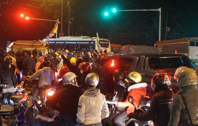 Tuy nhiên, khi đoàn đến ngã tư cầu Gỗ, cách trụ sở Công an huyện Gia Lộc (khoảng 500m) thì dừng lại khiến đoạn đường này bị tắc nghẽn kéo dài và lực lượng CSGT phải làm việc vất vả.