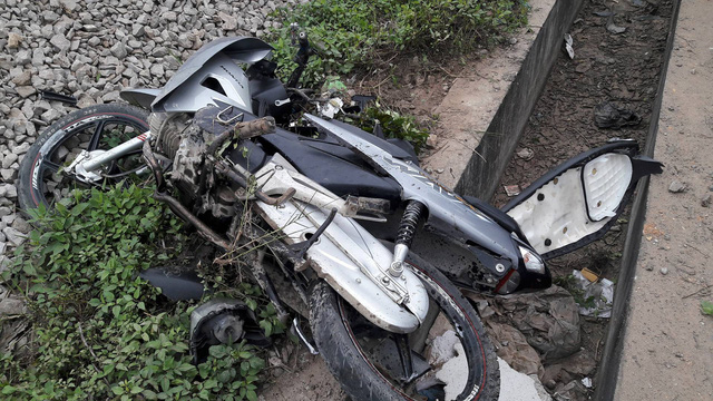 Chiếc xe máy chở 2 nam thanh niên vừa vào đường ngang dân sinh thì bị tàu SE2 lao đến tông phải. Cú tông kinh hoàng khiến chiếc xe máy bị văng xa hơn 20m, làm 1 người tử vong tại chỗ, 1 người bị thương nặng.