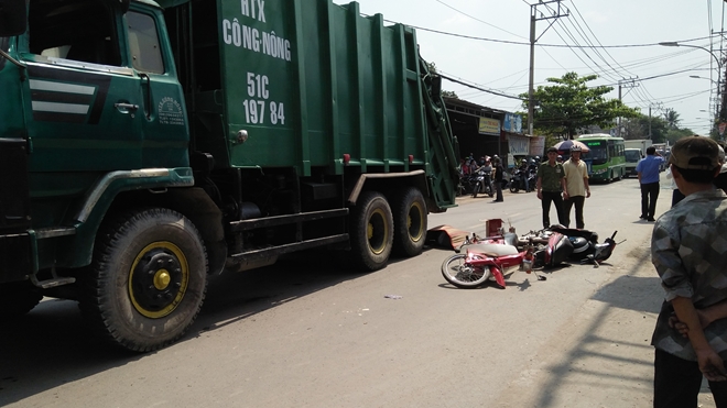 Đúng lúc này, xe chở rác BKS 51C-197.84 do nam tài xế (chưa rõ tên tuổi) chạy phía sau không kịp xử lý nên cán qua người nam sinh khiến nạn nhân chết tại chỗ.