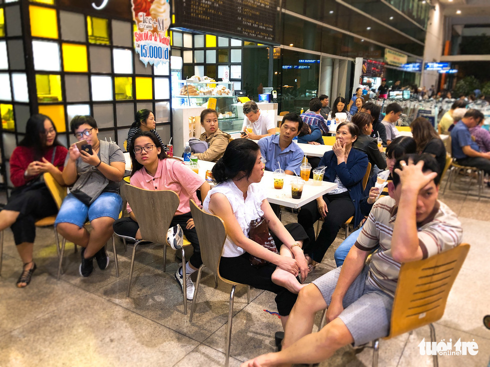 Vạ vật chờ đợi chuyến bay muộn ở cảng nội địa, sân bay Tân Sơn Nhất - Ảnh: QUANG THẾ