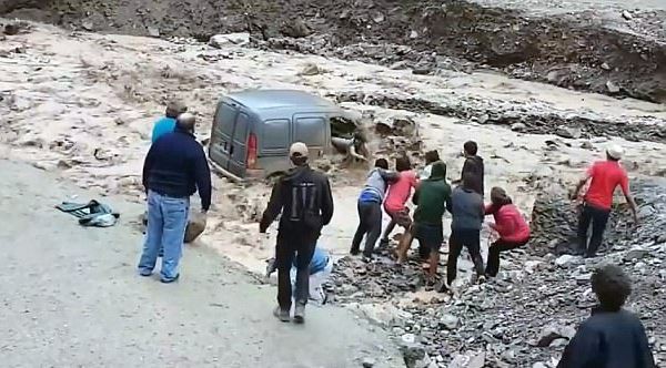 Theo một đoạn video khác, có thể thấy hình ảnh một chiếc xe hơi đang bị dòng nước lũ cuốn trôi. Nhiều người dân đã cố gắng chạy theo phương tiện này nhằm tìm cách ứng cứu nữ tài xế trẻ tuổi còn mắc kẹt bên trong.