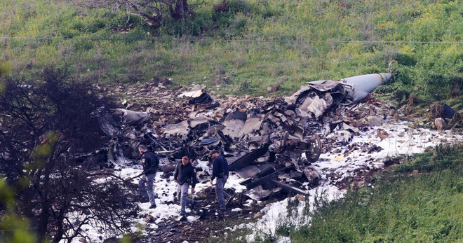 F-16 của Israel bị bắn rơi bởi lực lượng phòng không Syria. Ảnh: AP.