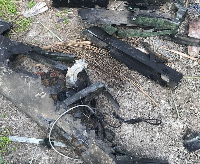 Phần còn lại của một chiếc máy bay không người lái của Iran đã bị Không lực Israel bắn rơi sau khi nó xâm nhập không phận Israel vào ngày 10 tháng 2 năm 2018. (Lực lượng Quốc phòng Israel). Ảnh: Times of Israel.