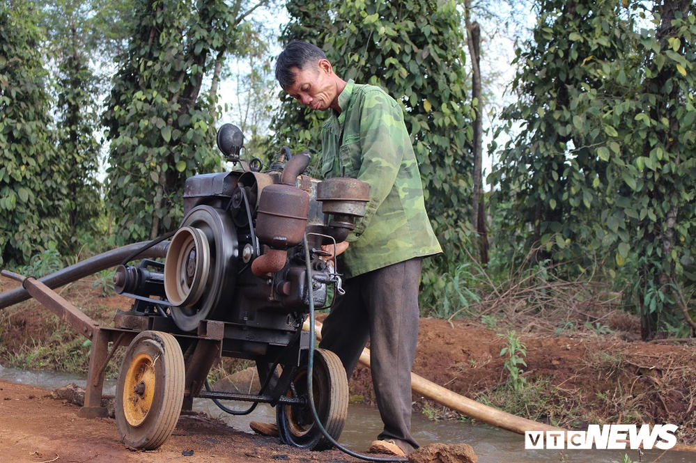 Tưới khá hiệu quả nhưng cách làm này sẽ tốn nhiều dầu hơn", ông Lê Đức Thiện (xã Ia Bă, huyện Ia Grai, Gia Lai) nói.