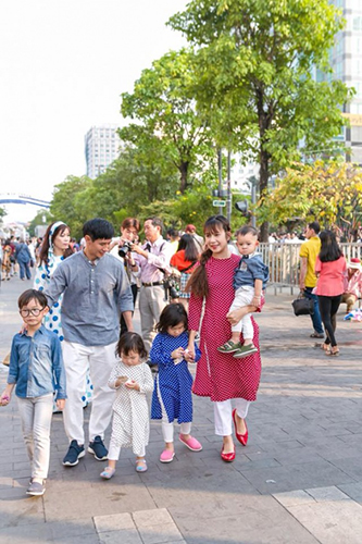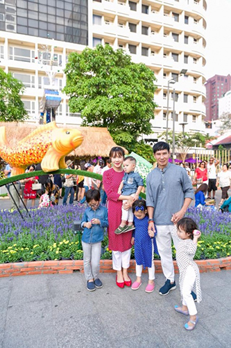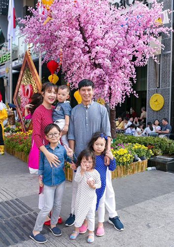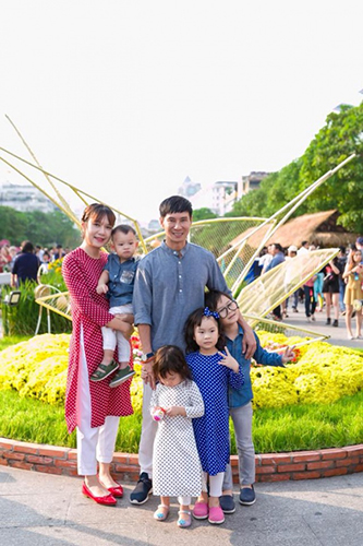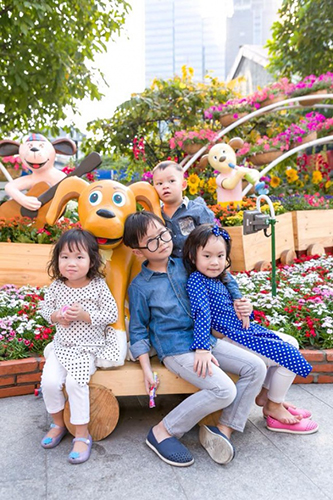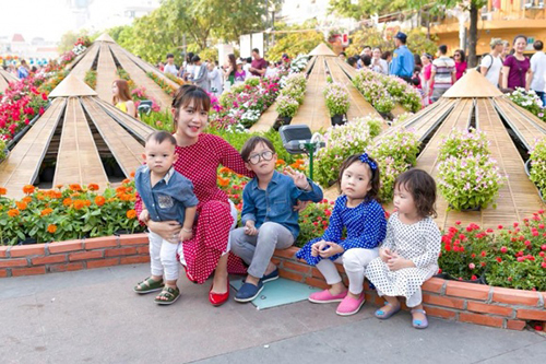 Vợ chồng Lý Hải, Minh Hà đưa 4 nhóc tì ra đường hoa chụp ảnh