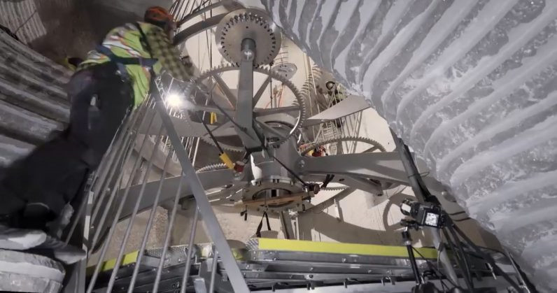 Cách hoạt động của đồng hồ rất đặc biệt. Nó được thiết kế để tính thời gian chậm hơn các thiết bị đo giờ thông thường. Theo đó, kim giây chuyển động 1 lần mỗi năm, và cứ 100 năm, kim chỉ phút đổi vị trí. Chuông báo sẽ cất lên khi hết 1 thế kỷ. “Việc xây dựng đã bắt đầu. Từ độ cao 152 mét, chúng tôi đang làm việc ngày đêm.