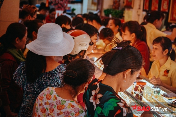 Đến 9h, mọi người phải chen chúc nhau để đi vào tiệm vàng.