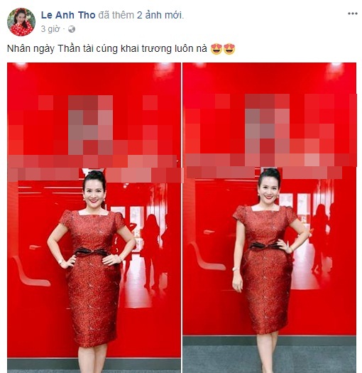 Tuy nhiên, khi sự việc đang có chiều hướng nguôi ngoai, lắng xuống thì mới đây, vợ Bình Minh bất ngờ thông báo "tin vui". Theo đó, bà mẹ hai con khoe khéo hình ảnh cô diện đầm đỏ, nở nụ cười rạng rỡ, đầy hạnh phúc kèm dòng trạng thái "Nhân ngày Thần tài cúng khai trương luôn nà" khiến dân tình "phát sốt".