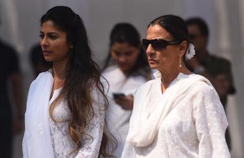 Diễn viên Tanisha Mukerjee đi viếng cùng mẹ.