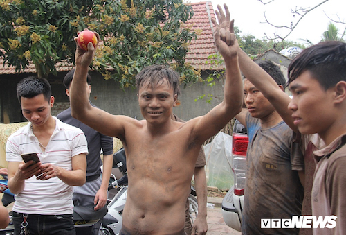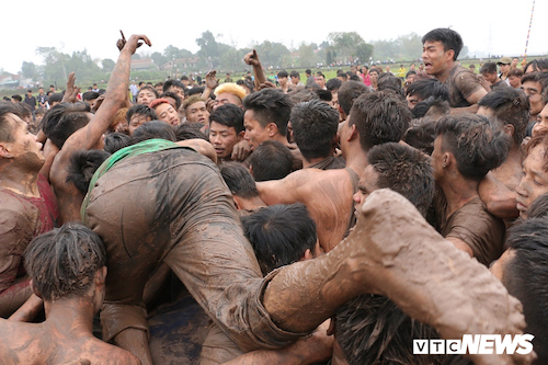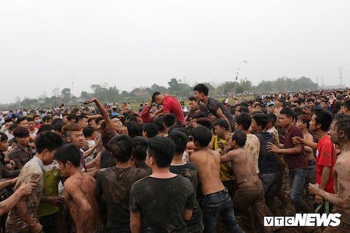 Hàng nghìn thanh niên lao vào tranh cướp với hi vọng lấy may. Khi quả phết bay ra khỏi khu vực quy định, các thanh niên sẵn sàng lội ao bùn để tranh đuổi, không ai chịu thua ai.