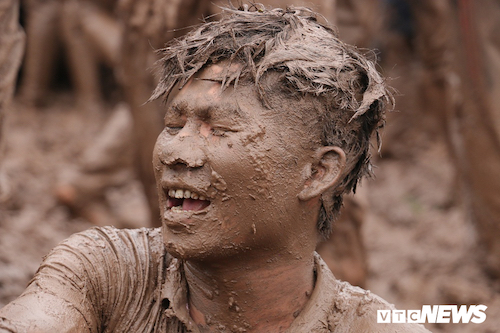 Bùn phủ từ đầu đến chân, chàng thanh niên này vẫn nở nụ cười.