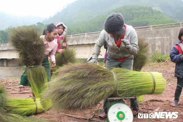 Hoa đót được các thương lái từ dưới xuôi lên mua để bán lại cho các cơ sở làm chổi. (Ảnh: Rin)
