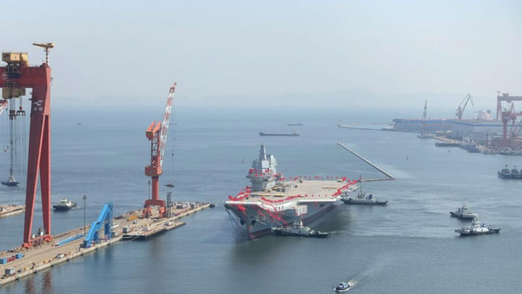 Ảnh minh họa : Hàn không mẫu hạm đầu tiên do Trung Quốc đóng. Ảnh chụp nhân lễ hạ thủy ở Đại Liên, tỉnh Liêu Ninh, ngày 26/04/2017. REUTERS/Stringer