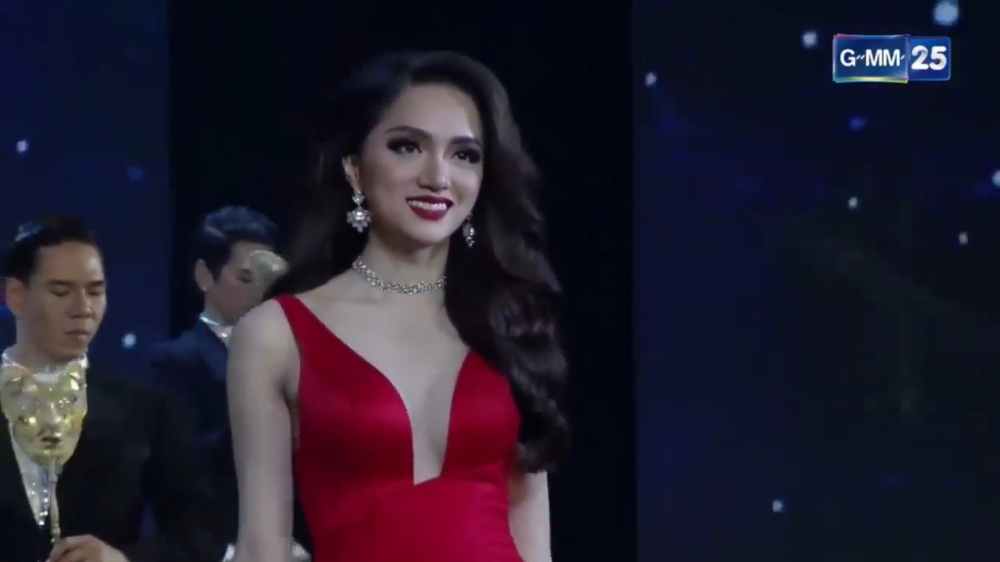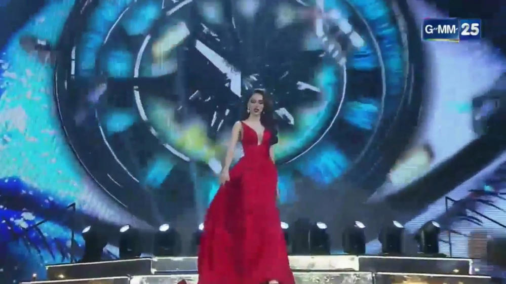 Sau phần mở màn đầy màu sắc của 28 thí sinh, đại diện các nước tiếp tục bước vào phần thi Trang phục Dạ hội. Mỗi thí sinh đều cố gắng chọn cho mình những thiết kế đẹp nhất, Hương Giang chọn cho mình bộ váy dạ hội màu đỏ nổi bật.