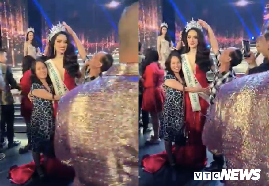 Giây phút bố mẹ Hương Giang xúc động, ôm chầm xoa đầu con gái đêm đăng quang