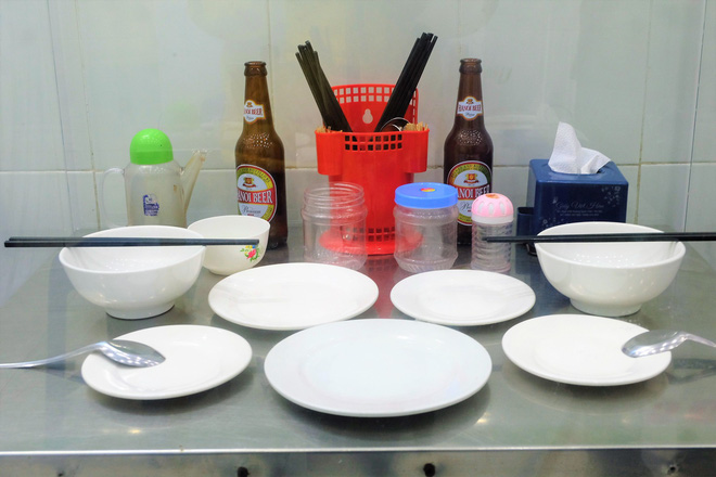 Toàn bộ vật dụng được vị cựu tổng thống Mỹ Obama và đầu bếp nổi tiếng Anthony Bourdain sử dụng cách đây 2 năm khi đến bún chả Liên Hương được đóng khung trong lồng kính.