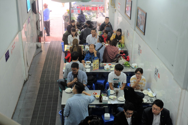 Lượng khách tại quán bún chả Obama tăng nhiều lần, trong đó, rất đông thực khách đến từ Pháp, Mỹ, Thái Lan... Ảnh: Hoàng Linh