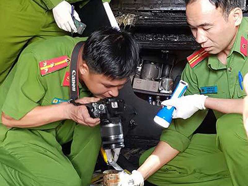 Trong ngày 13-3, lực lượng chức năng phong tỏa hiện trường để khám nghiệm. Cơ quan chức năng ghi nhận mùi xăng nồng nặc, thu giữ được một bình khò gas loại mini và chiếc can nhựa đựng xăng.