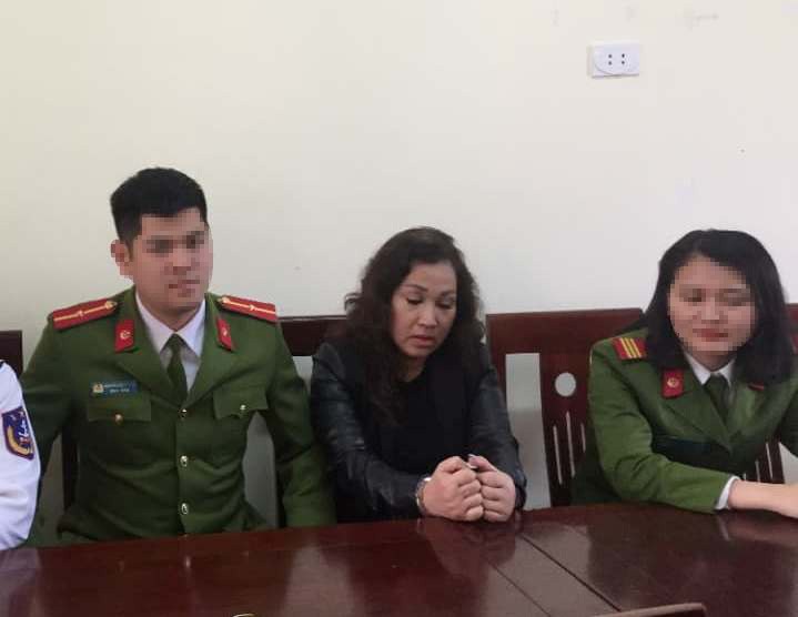 Nữ đối tượng Võ Thị Cam tại cơ quan công an.