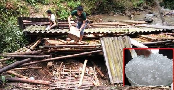 Theo báo cáo nhanh của huyện Quan Hóa, một trận mưa đá kèm theo dông lốc, gió giật mạnh xảy ra tại hai xã Hiền Kiệt và Trung Sơn vào tối 18/3.