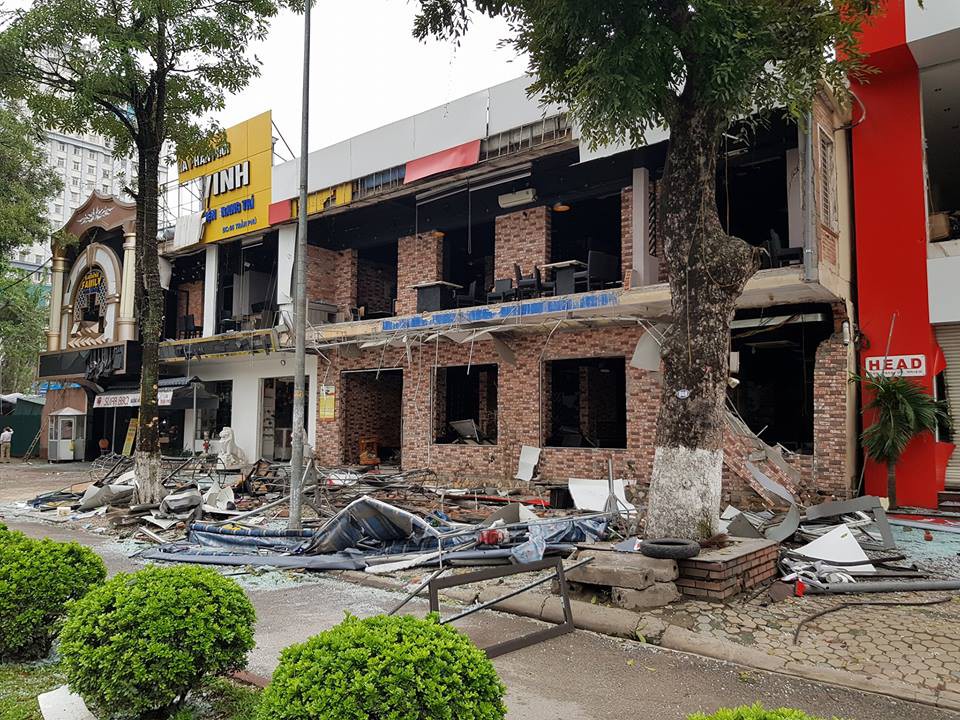 Tại hiện trường, toàn bộ kính, cửa sổ cả dãy nhà 2 tầng bị nổ tung, tan hoang, khói bốc cao nghi ngút, mùi khét lẹt. Các mảnh kính bay tung tóe cách xa hàng trăm mét vương vãi khắp đường. Mọi tài sản bên trong dãy nhà bị phá tan hoang.