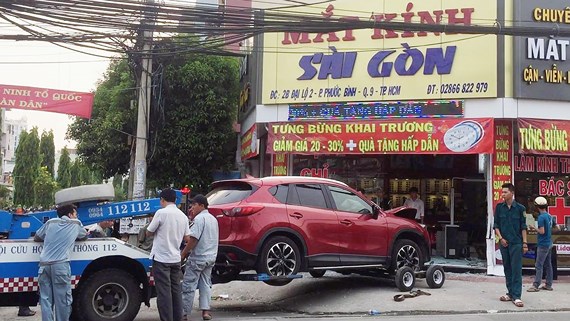 Thông tin ban đầu, khoảng 15 giờ, ngày 28-3, một người đàn ông khoảng 45 tuổi, đang điều khiển xe ô tô hiệu mang BKS 51F-971.16 lưu thông trên đường Đỗ Xuân Hợp hướng từ đường Nguyễn Duy Trinh ra xa lộ Hà Nội, quận 9, TPHCM thì bất ngờ băng qua trái, lao vào tiệm bán mắt kính ngay ở giao lộ Đại lộ 2, phường Phước Bình, quận 9. Lúc này, 2 cha con chủ tiệm mắt kính ngồi bên trong phát hiện nên hốt hoảng tháo chạy ra ngoài.