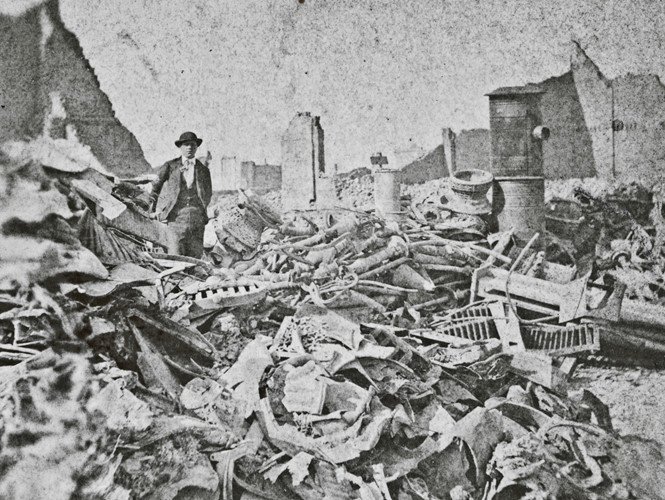 Theo thống kế vụ đại hỏa hoạn Chicago đã làm chết khoảng 300 người, phá hủy một diện tích rộng 9 km2, khiến hơn 100.000 người lâm vào cảnh mất nhà cửa. Thiệt hại kinh tế là 222 triệu USD, chiếm 1/3 tài sản của thành phố (tương đương 4 tỷ USD năm 2015). Ảnh: Urban Remains Chicago.