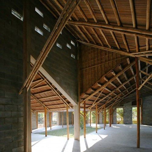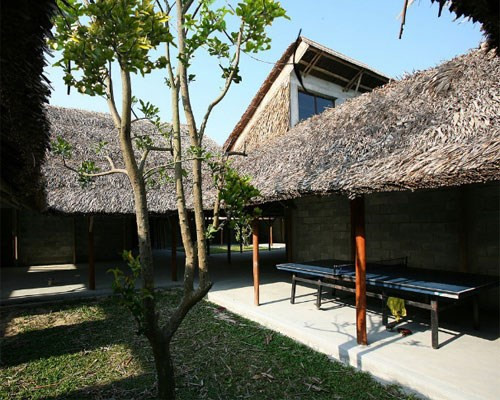 Nhà sinh hoạt cộng đồng được gọi là Trung tâm cộng đồng xã Cẩm Thanh ở thành phố Hội An, Quảng Nam. Kiến trúc này lấy cảm hứng từ nhà cổ với những hàng cau, giàn dây leo.