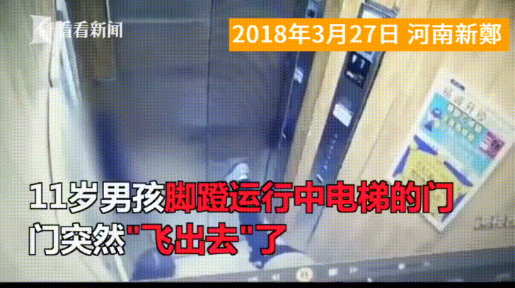 Theo Sina News, ban đầu cậu bé này vào thang máy với em gái ở tầng 7. Được một lúc, có lẽ do muốn giãn cơ mà cậu bé lấy một tay tỳ lên tường, còn chân trái thì giơ về phía sau chạm vào cửa thang máy, sau đó lấy lực duỗi mạnh. Lúc cậu duỗi chân cũng là lúc cánh cửa thang máy đột nhiên bật tung ra làm đôi trong sự ngỡ ngàng của cả 2 đứa trẻ.