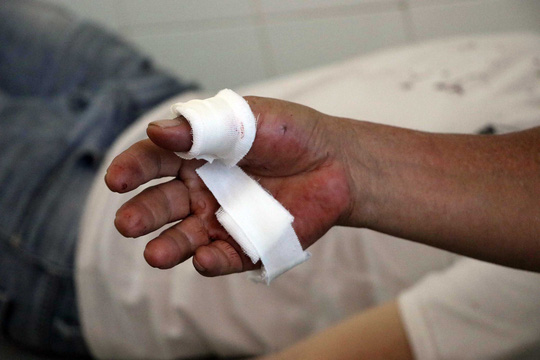 Vụ nổ súng khiến cha con ông Bình bị thương ở tay.