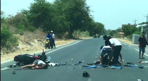 Vụ tai nạn này xảy ra vào khoảng 12h30 ngày 6/4, trên tuyến đường liên xã Chí Công - Phan Rí Cửa, đoạn qua địa bàn thôn Thanh Tân, xã Chí Công, huyện Tuy Phong (Bình Thuận). Tại thời điểm này, 3 thanh niên đi trên xe máy đã đâm trực diện vào một xe máy khác khiến 2 thanh niên tử vong, 1 người gãy chân và người còn lại bị thương nhẹ.