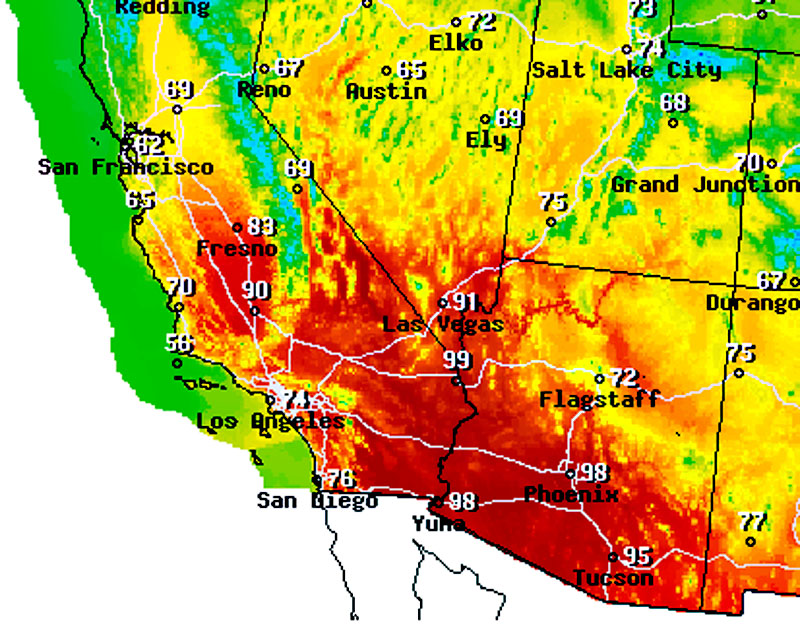 VBF-California tràn ngập không khí nóng tại trong ngày hôm nay. Theo đó khí nóng lên đến 90 độ F, tăng cao kỷ lục. Nóng ở California có phần khô từ sa mạc.