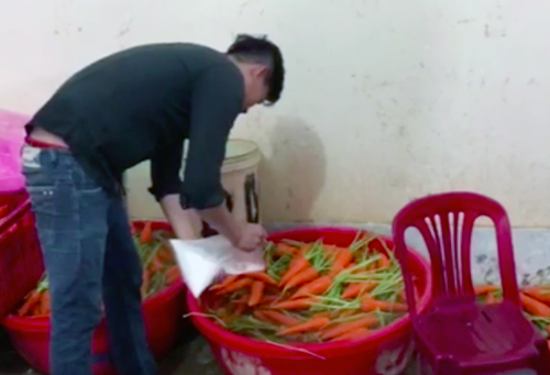 Cách đó vài dãy nhà, trinh sát cũng phát hiện ba cơ sở khác do Lý Ngọc Châu, Nguyễn Thanh Sang và Nguyễn Văn Dũng làm chủ, đang tẩy rửa tổng cộng hơn 3,2 tấn củ cải, cà rốt... bằng cách tương tự.