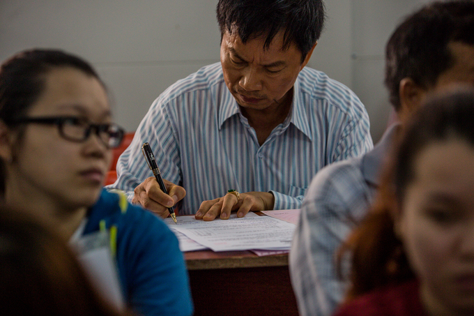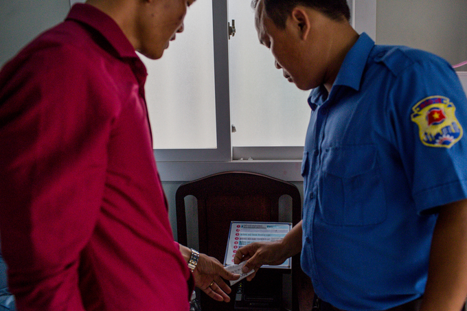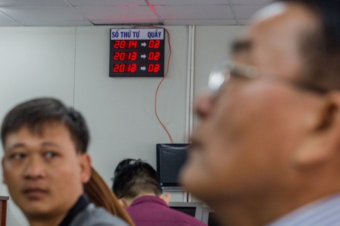 Để giải quyết thủ tục nhanh gọn, ba cán bộ văn phòng trực tiếp hướng dẫn người dân bốc số thứ tự để chờ đến lượt giao dịch. "Hơn tuần nay, từ 5h tôi đã thấy người dân xếp thành hàng dài trên đường để làm thủ tục. Bữa nay để giảm tình trạng quá tải, bãi gửi xe có xếp thêm bàn ghế cho người dân ngồi chờ", cán bộ văn phòng cho biết.