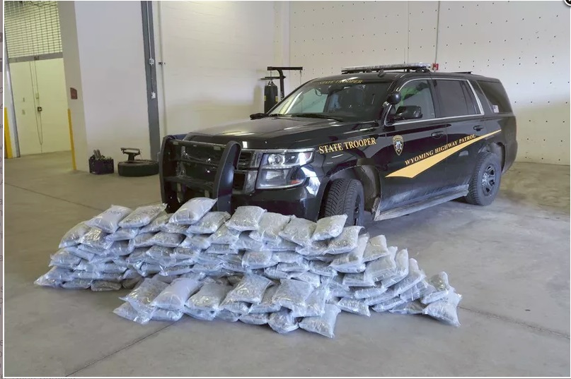 Cảnh sát tuần cảnh xa lộ Wyoming bắt giữ hai người gốc Việt vận chuyển 114 pounds cần sa có giá thị trường $285.000 Mỹ kim trên xe.