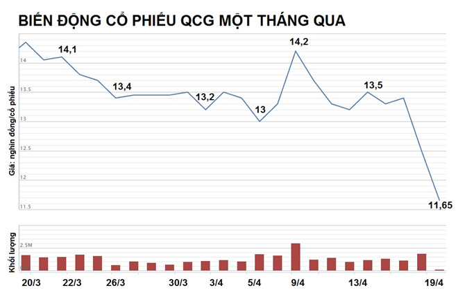 Trong vòng một tháng gần đây, cổ phiếu QCG liên tục biến động nhưng giữ chiều hướng giảm, hiện đã giảm gần 20% về thị giá. Còn nếu tính từ đỉnh giá vào giữa năm 2017, QCG đã giảm hơn một nửa.