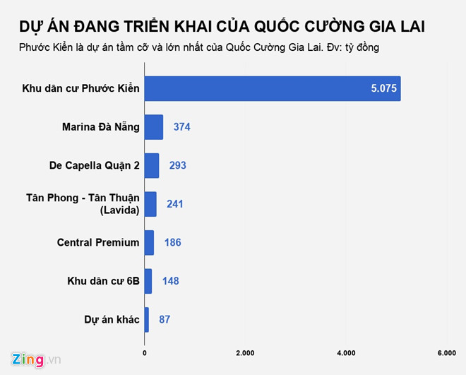 Phước Kiển cũng chính là dự án trọng tâm và lớn nhất của Công ty cổ phần Quốc Cường Gia Lai với giá trị đầu tư tính đến cuối năm 2017 lên tới hơn 5.075 tỷ đồng. Trong năm 2017, đại gia phố núi cũng đã rót thêm hơn 844 tỷ vào dự án này.