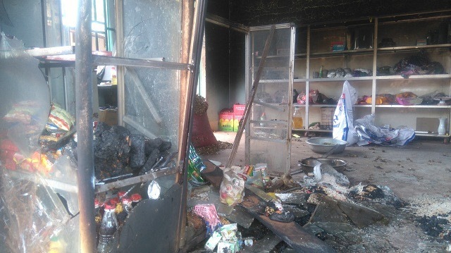 Hiện trường cháy cửa tiệm tạp hóa. Nguồn ảnh: Dân Việt