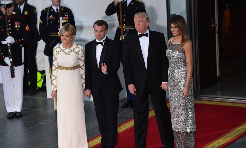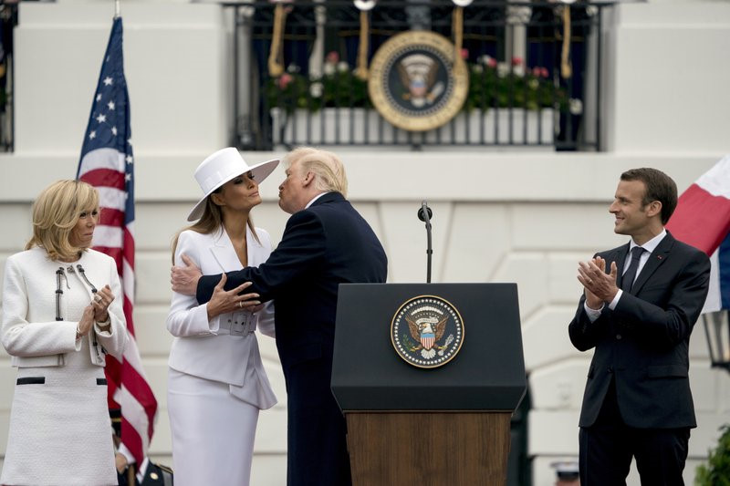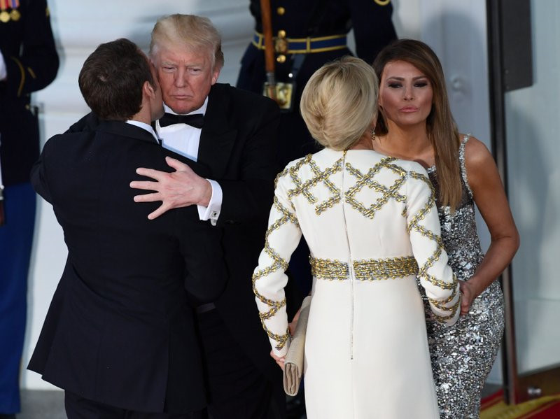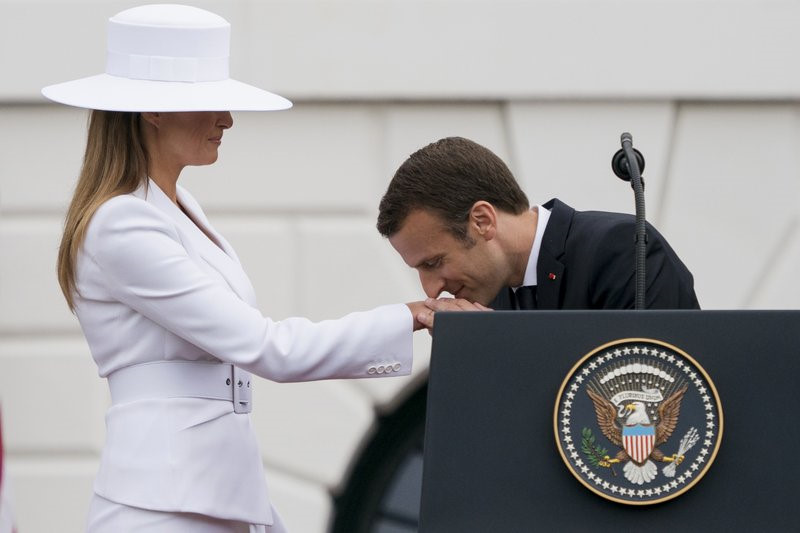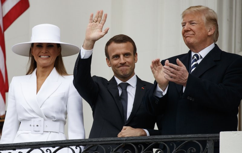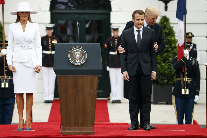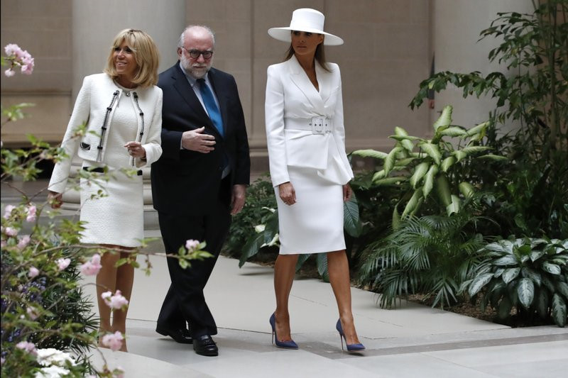 Đệ nhất phu nhân Mỹ Melania Trump trở thành tâm điểm chú ý hôm 24/4 khi Tổng thống Pháp Emmanuel Macron đến Washington. Đây là lần đầu tiên Nhà Trắng đón tiếp một lãnh đạo thế giới thăm cấp nhà nước. Ảnh: AP.