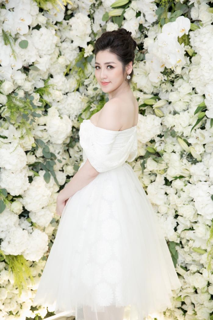 Tạm gác những buồn phiền trong chuyện tình cảm, Nhã Phương xuất hiện rất xinh đẹp, rạng rỡ trong bộ váy trắng tinh khôi của NTK Chung Thanh Phong.