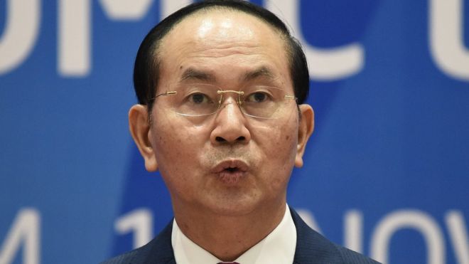 Chủ tịch Trần Đại Quang tại buổi họp báo kết thúc Hội nghị APEC 2017 ở Đà Nẵng hồi tháng 11/2017