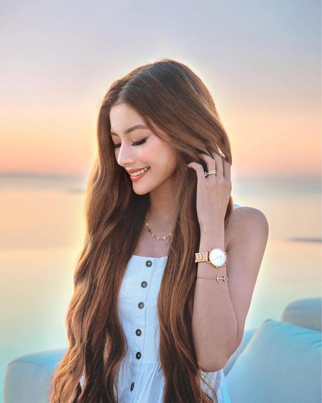 Không chỉ có mái tóc đẹp mà cô còn có thân hình thon thả và khuôn mặt vô cùng xinh đẹp.